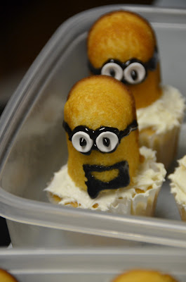 These little guys on the cupcakes are Minions. From the movie Despicable Me. Which my kids LOVED.